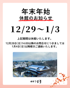 【年末年始 休館のお知らせ】